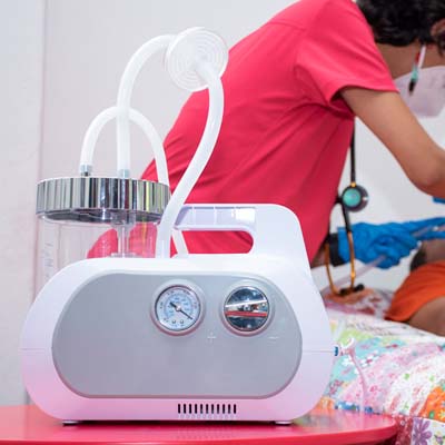 El aspirador de secreciones ADS100 es una unidad de succión portable diseñada para ser utilizada en la eliminación de fluidos en las vías respiratorias y para eliminar material infeccioso de heridas. Puede ser usado durante cirugía en la sala de Operación o en la habitación