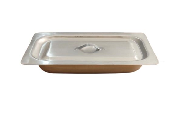 Cubeta o bandeja con tapa en Acero inoxidable para instrumental.