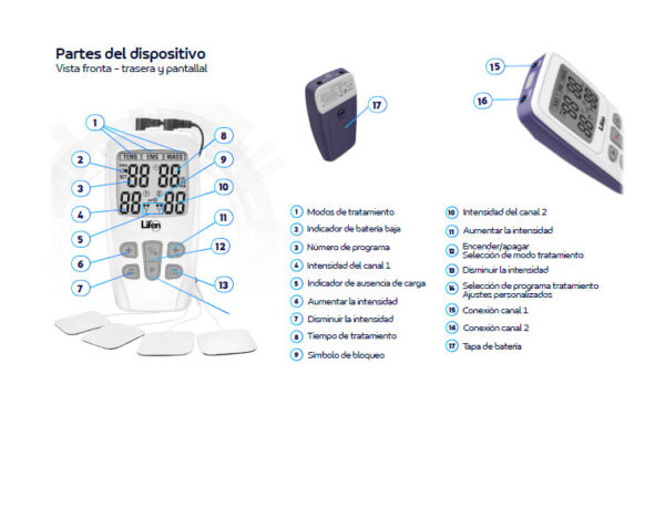 Tiene la función de aliviar el dolor muscular y articular (tens) dar forma y aumentar la fuerza muscular (ems) y aliviar la tensión muscular y la fatiga (masajeador).